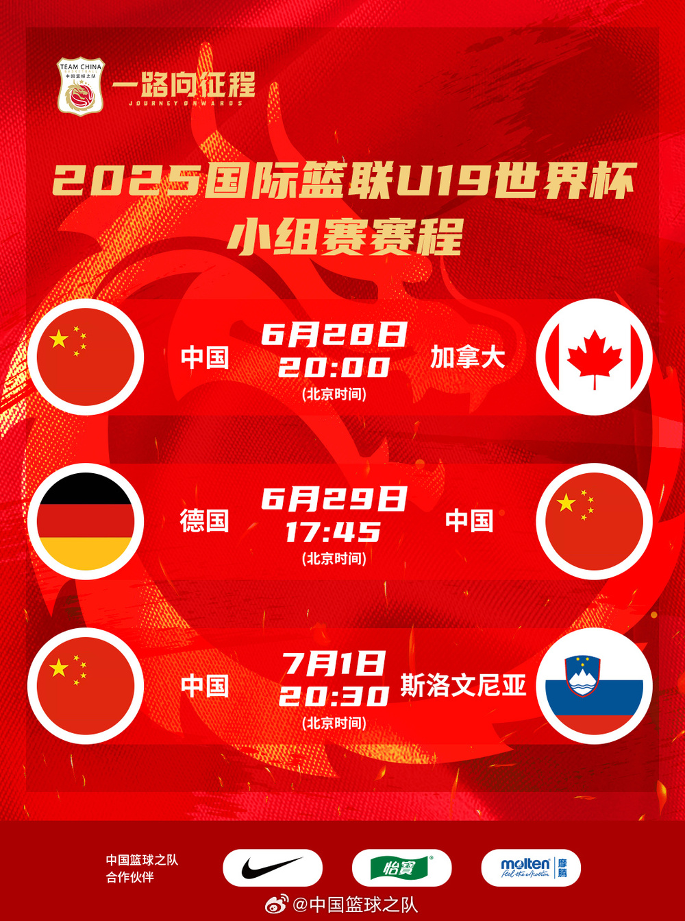 +订阅2025国际篮联U19世界杯将于6月28日至7月6日在瑞士洛桑举行,中国U19男篮被分在B组,小组赛首战将于6月28日对阵加拿大队,随后依次迎战德国队和斯洛文尼亚队。中国队本届赛事的参赛阵容为杨溢、朱正、侯孟泽、彰华非、陈家政、崔新泉、冯傲、张博源、王洪泽、郇斯枫、刘李、郇斯楠。