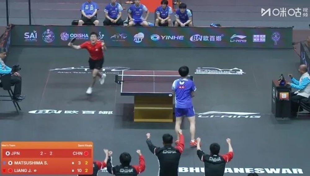 北京时间10月15日凌晨,2025年乒乓球亚锦赛男团半决赛结束争夺,中国男乒经过4个小时鏖战,在0比2落后的情况下3比2逆转战胜日本男乒,晋级决赛。