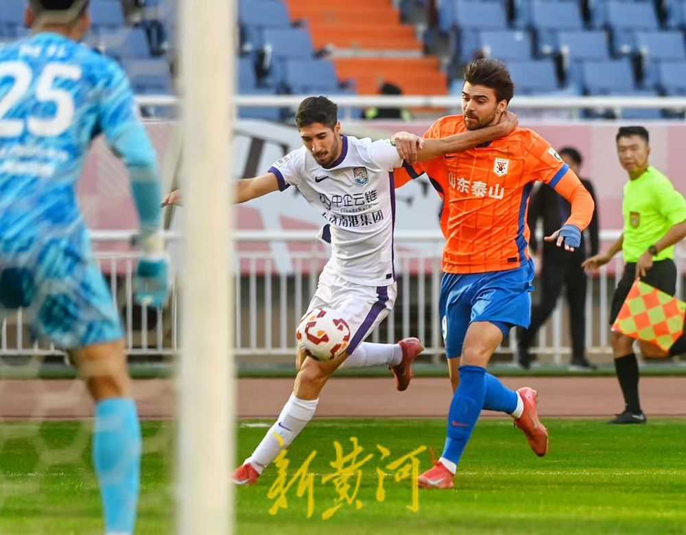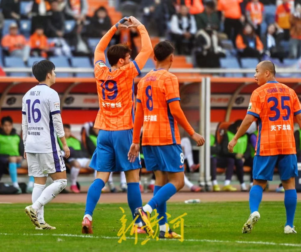 11月1日下午,山东泰山队在本赛季中超最后一个主场比赛中以2:1击败天津津门虎。以下是本场比赛的精彩瞬间: