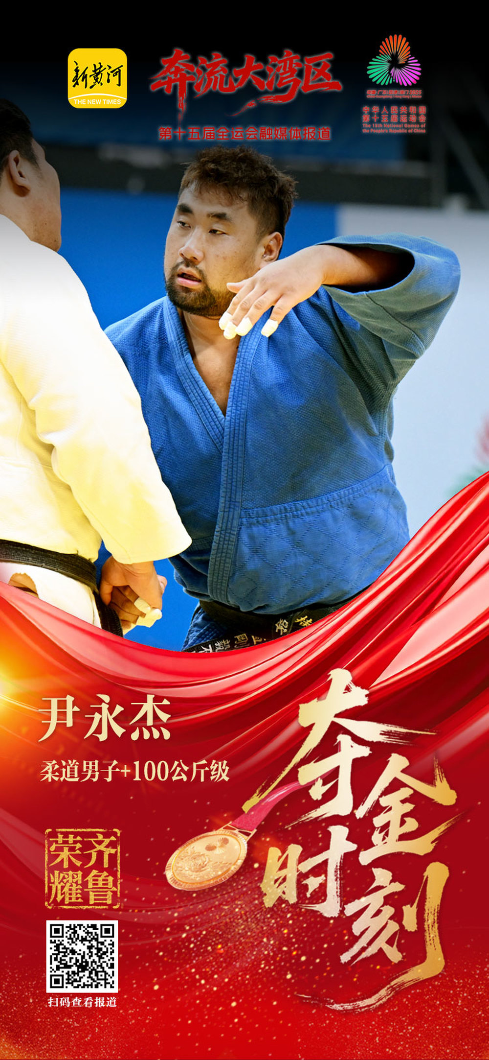 11月12日,第十五届全运会柔道男子+100公斤级金牌赛传来捷报:山东选手尹永杰战胜自己的山东队友原绍童,为山东代表团再添一金,原绍童获得亚军。