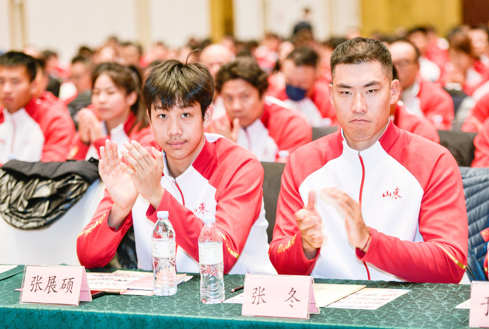 12月2日,山东省体育局召开第十五届全运会总结大会,全面回顾过去四年备战参赛历程,同时正式启动第十六届全运会新周期工作部署。本届全运会中,山东代表团获得49金53银41铜,奖牌总数达143枚,连续五届保持全运会金牌数、奖牌数全国首位。总结大会上,陈梦、张展硕、张子宇、刘德文、练俊杰、李梦麟、张明煜、崔晨曦、唐浩然等金牌运动员集体亮相。
