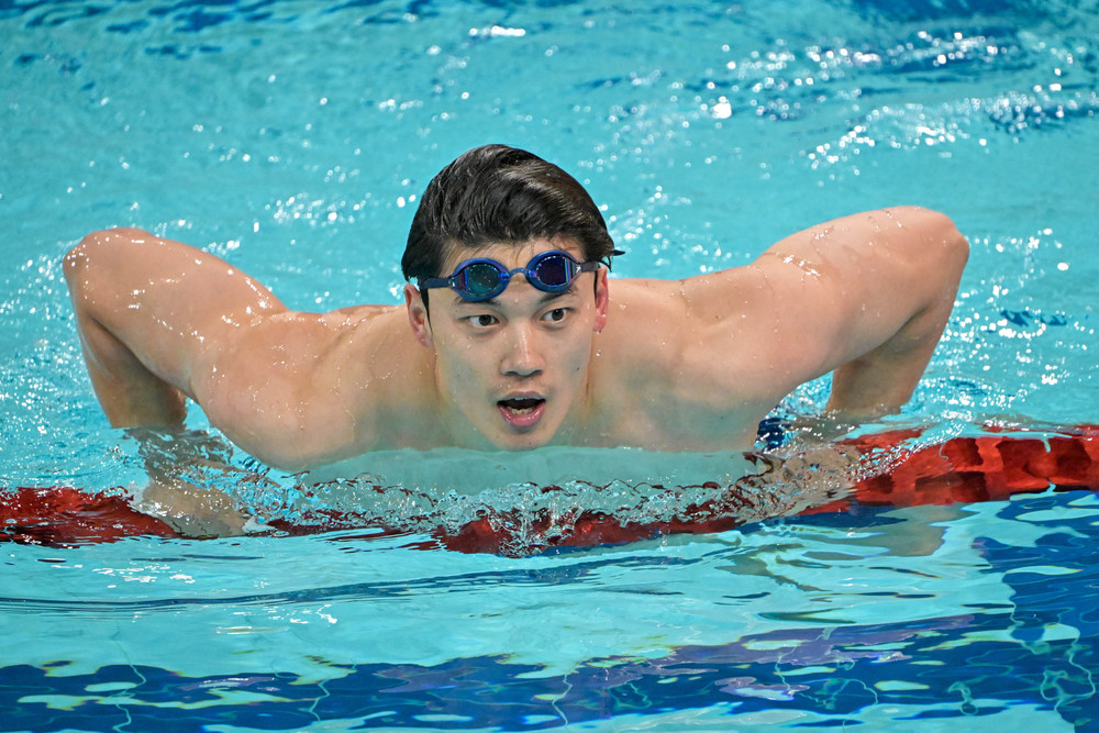张展硕在男子800米自由泳比赛中收获个人本次赛事第四金,他以7分44秒45的成绩领先于德国选手梅尔滕斯的7分46秒97,并刷新个人最佳成绩。