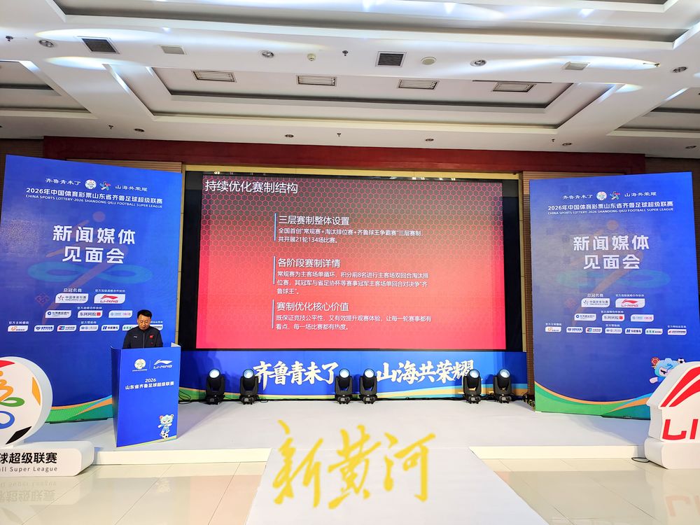 备受期待的2026年山东省齐鲁足球超级联赛,将于本周六晚拉开大幕。4月18日19:00.新赛季齐鲁超赛开幕式暨揭幕战将于泰山体育场进行,卫冕冠军泰安泰山城建将坐镇主场迎战来访的青岛队。4月16日,2026年山东省齐鲁足球超级联赛媒体见面会在济南举行,新黄河记者从会上获悉,2026年山东省齐鲁足球超级联赛持续深化“好运山东”+“齐鲁超赛”联动IP,联合文旅、商务等部门,整合行业优质资源,创新打造“观齐鲁超赛、购齐鲁好货、品齐鲁美食、游齐鲁大地”消费链条,推动赛事流量转化为消费增量。