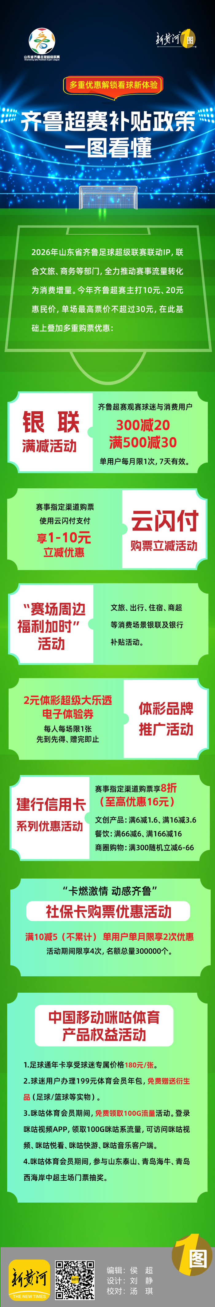 这个赛季,齐鲁超赛以惠民票价、多元优惠和跨界融合,为球迷打造了一场“看得起、玩得嗨、买得值”的体育嘉年华。无论你是走进主场感受激情氛围,还是在“第二现场”与好友共享球趣,都能在享受足球魅力的同时,收获实实在在的福利。2026年,让我们相约山东,观齐鲁超赛、购齐鲁好货、品齐鲁美食、游齐鲁大地,一起为热爱助威,为赛事经济添把火!