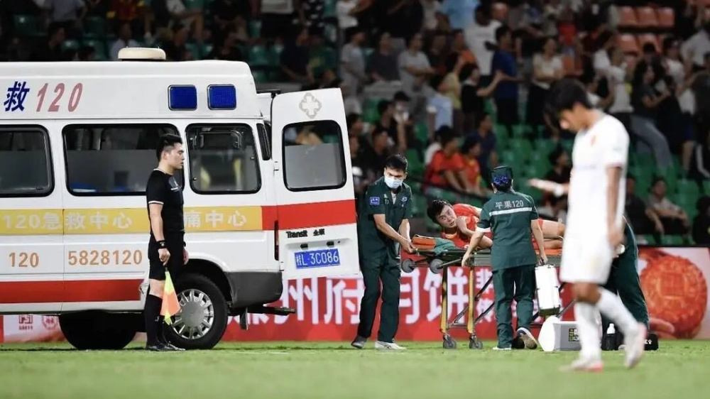 随后,平果球员黄威在拼抢中又与铜梁龙球员对抗后受伤倒地。救护车再次入场将黄威送往医院。