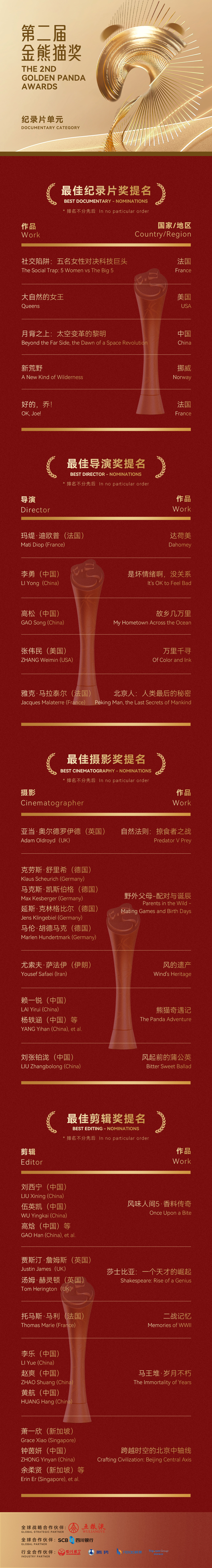 评委会特别奖部分,《澎湃中国》《您的声音》《成都大运会》等纪录片入围中国故事国际传播奖提名。