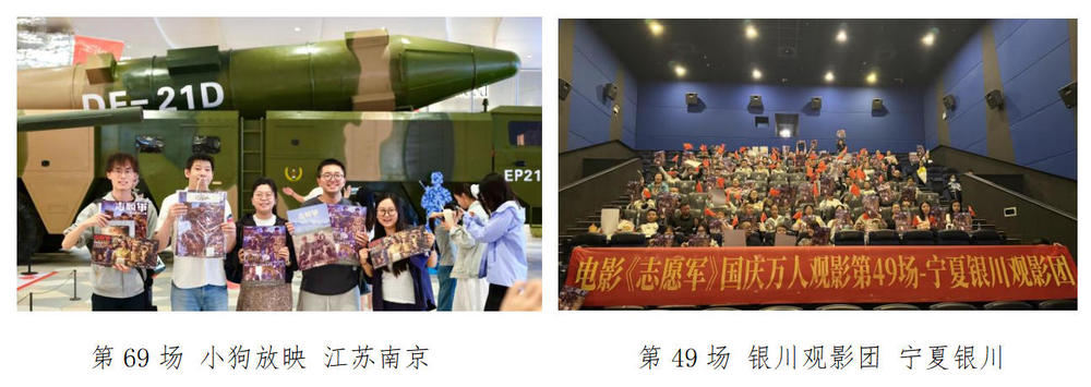 此次电影《志愿军:浴血和平》“万人见证胜利时刻”主题观影活动覆盖全国60余座城市,包括天津、广州、哈尔滨、福州、郑州、无锡、厦门、大连、温州、嘉兴、烟台、泉州、中山、湛江、徐州、湖州、上饶等城市的活动场次吸引了超过上百位观众入场,众多观众汇聚一堂,以最质朴的方式,完成了对祖国一次集体而深情的致敬。
