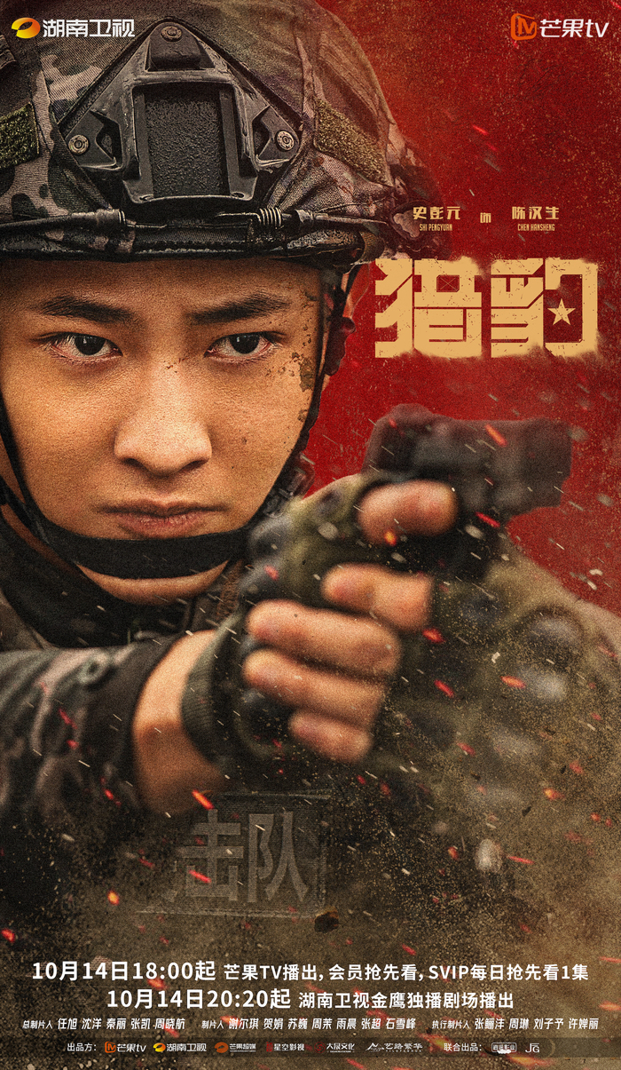 10月14日,《猎豹》在湖南卫视、芒果TV正式开播,该剧由五百担任总导演,陈泳旭、田键担任导演,翟小乐、董俊杰等担任编剧,史彭元、杨烁、蒋璐霞、武强领衔主演,袁文康特别主演,周惠林、白威特别主演,连奕名友情出演,雷淞然、袁大森、梁浩川等主演。剧集讲述了陈汉生(史彭元饰)等军校毕业生历经艰苦训练、任务磨砺后入选猎豹突击队,与一众队员直面生死考验,在多次执行艰巨任务中淬炼成长的故事,展现了新时代军人成长历练中的热血与担当。
