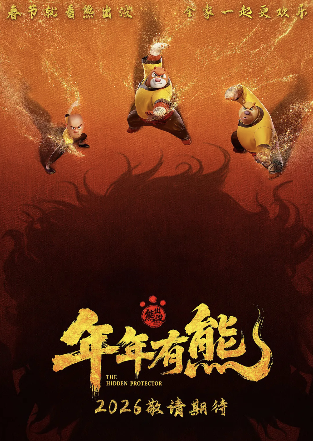 而《熊出没·年年有熊》作为春节档的“常驻选手”,已经是该系列的第12部大电影。自2014年首部《熊出没之夺宝熊兵》上映以来,“熊出没”系列累计票房已突破80亿元,稳定的亲子观影需求使其如同年夜饭的饺子般成为春节档不可或缺的一部分。影片构建了一个东方玄幻的世界观:熊大曾是森林里的“老大哥”,具有以柔克刚的太极能力;熊二拥有裂地成石的土系能力;光头强则能驾驭雷电、获得疾速能力。直到不速之客将神力传给熊强组合,熊大不幸沦为了能力最弱者。为改变现状,熊大误入反派圈套,引发灭世危机……
