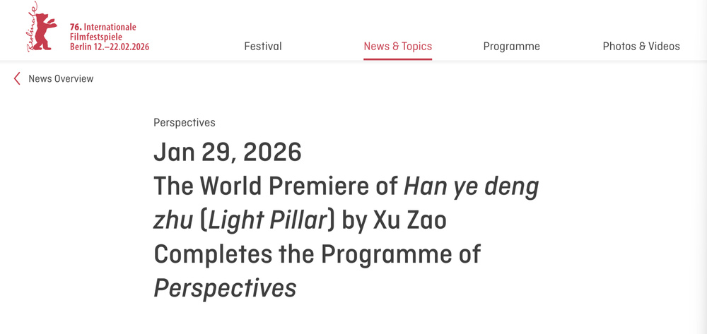 北京时间1月29日晚,第76届柏林国际电影节官方宣布,中国导演徐澡编剧导演的长片《寒夜灯柱》入选视点竞赛单元(Perspectives),将是该单元唯一入围的中国电影。