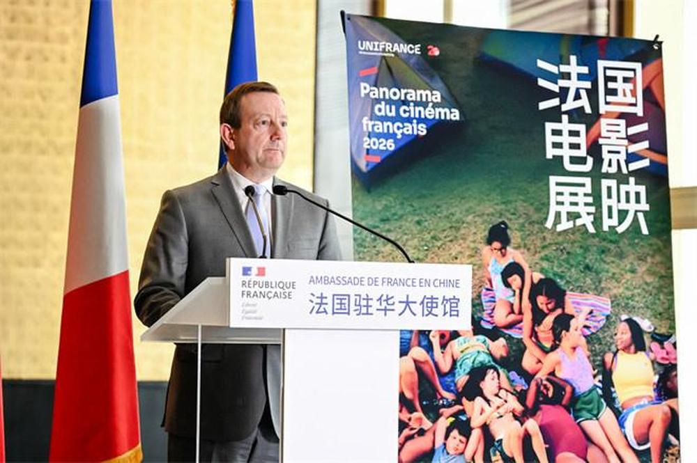3月25日,2026年法国电影展映新闻发布会在法国驻华大使馆举行。法国驻华大使白玉堂(Bertrand Lortholary),本年度展映形象大使、法国演员苏菲·玛索(Sophie Marceau)和展映宣传大使、导演、演员姜文出席开幕式暨新闻发布会,为2026年法国电影展映拉开帷幕。