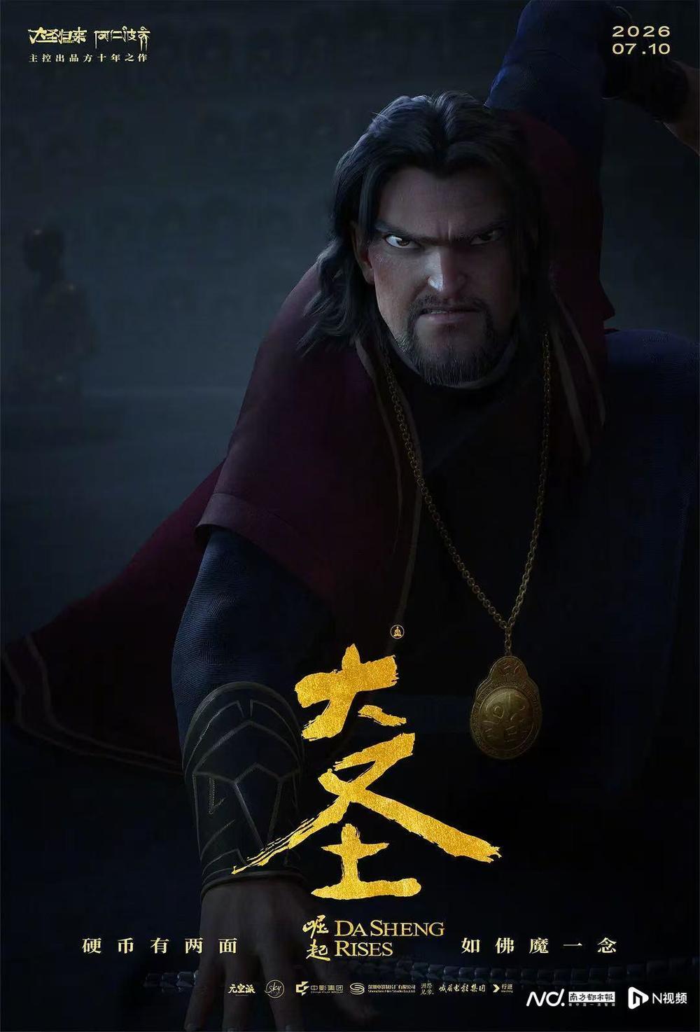 据了解,动画电影《大圣崛起》由《大圣归来》《冈仁波齐》主出品方天空之城影业11年磨一剑打造,由白丁编剧、王川监制,部分主创人员曾参与《大圣归来》的制作,延续“硬核国风+热血成长”的风格,聚焦大圣11年后再走英雄之路:佛的西行已落幕,魔的棋局已展开,天地为棋盘,众生为棋子。“你是神佛妖魔!你是齐天大圣!”“硬币有两面,佛魔一念间。”