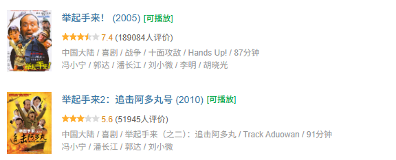 《举起手来》系列首部于2005年上映,由冯小宁执导、郭达与潘长江主演,以夸张荒诞的喜剧手法讲述农民与民兵智斗日军、保护国宝的故事。其凭借密集笑点和电视高重播率,成为不少90后、00后的童年回忆,并意外带火万仙山景区的旅游热度。