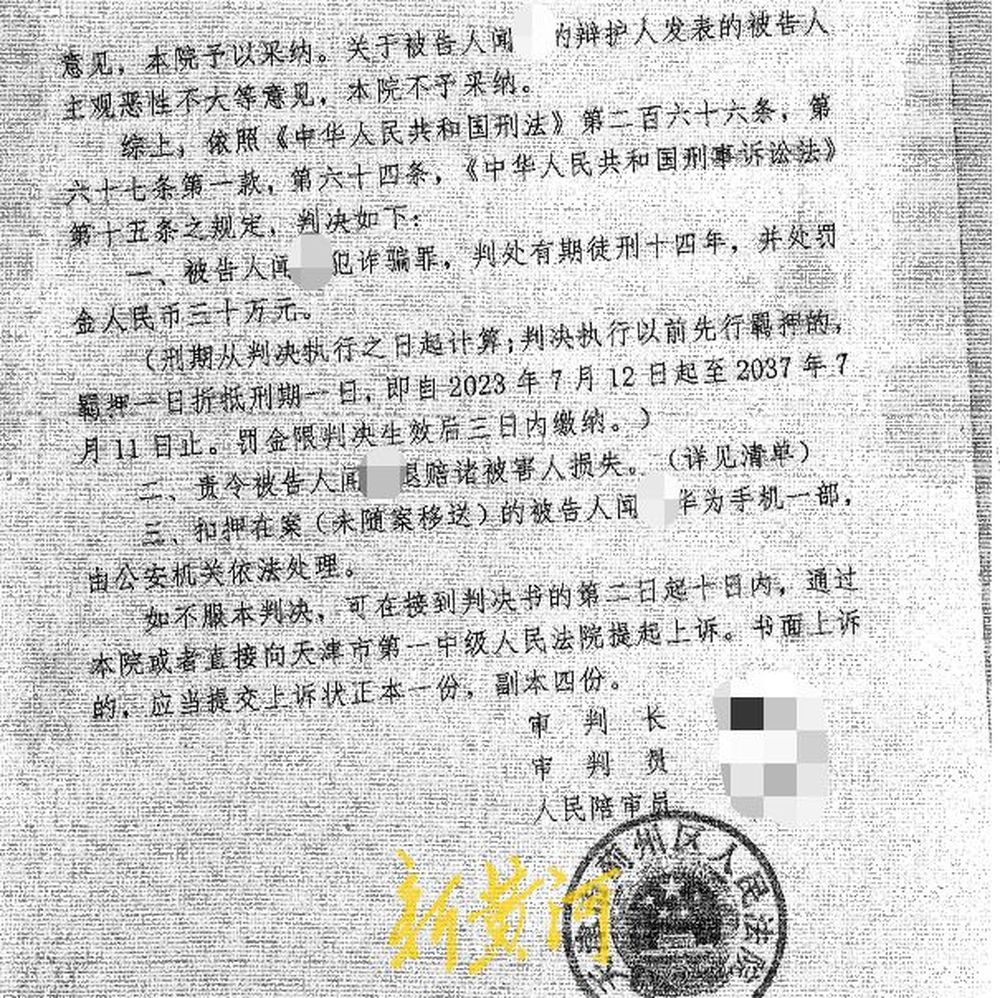 天津市蓟州区人民法院认为,闻某虽如实供述了主要犯罪事实,系自首,但其在取保候审期间再犯罪,主观恶性较大,对其不予从轻处罚。最终,法院被告人闻某犯诈骗罪,判处有期徒刑十四年,并处罚金人民币三十万元。同时,责令闻某退赔诸被害人损失。根据判决书附上的清单,闻某一共要退赔受害者共计500余万元。