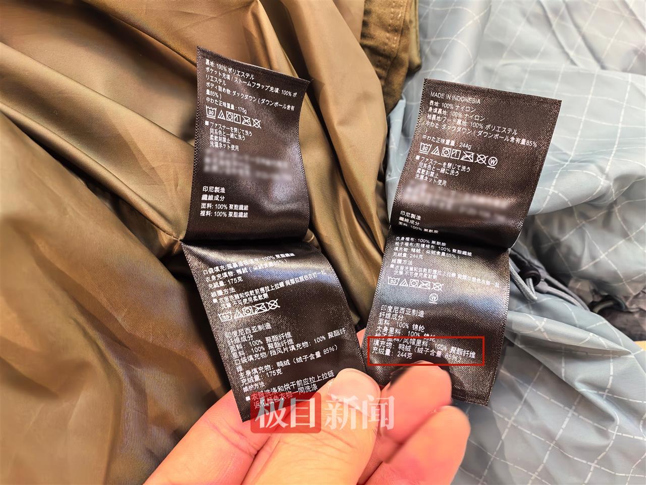 有羽绒服充绒量达244克(极目新闻记者拍摄)