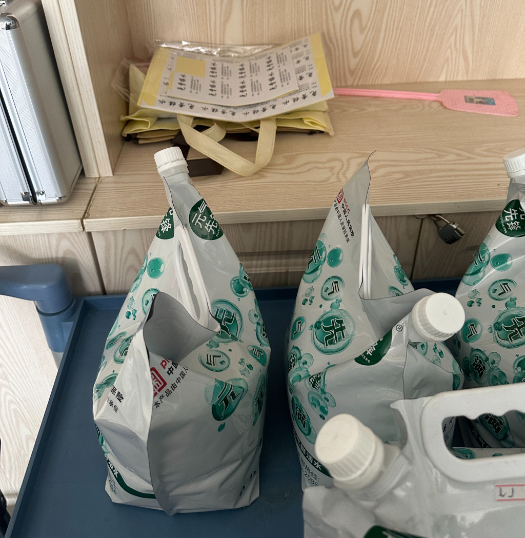 她称,在直播间购买产品达到一定金额或者购买了新人套餐的,都可以免费来领一定数量的水。“(水)不卖,只送”,她说,但想要接水,必须先花5元钱买一个专用水袋,老板解释:“这个袋子是锁氢的,氢气不会跑出来,而且能重复用,用一年都没问题。”