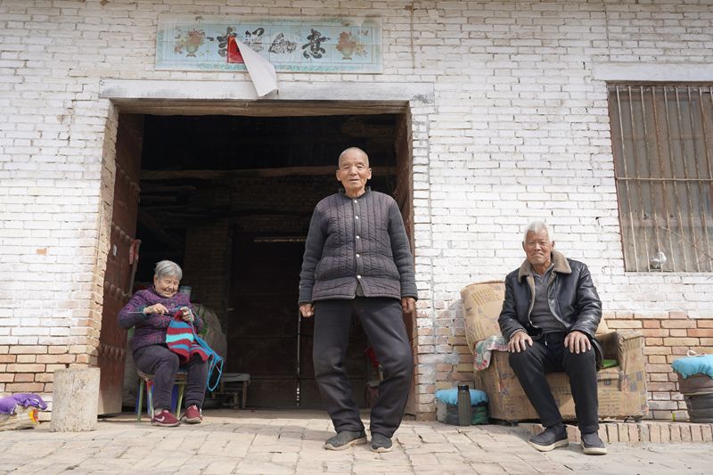 “旱腰带”上的村庄里,老人们闲坐在家门口聊天、打毛活。
