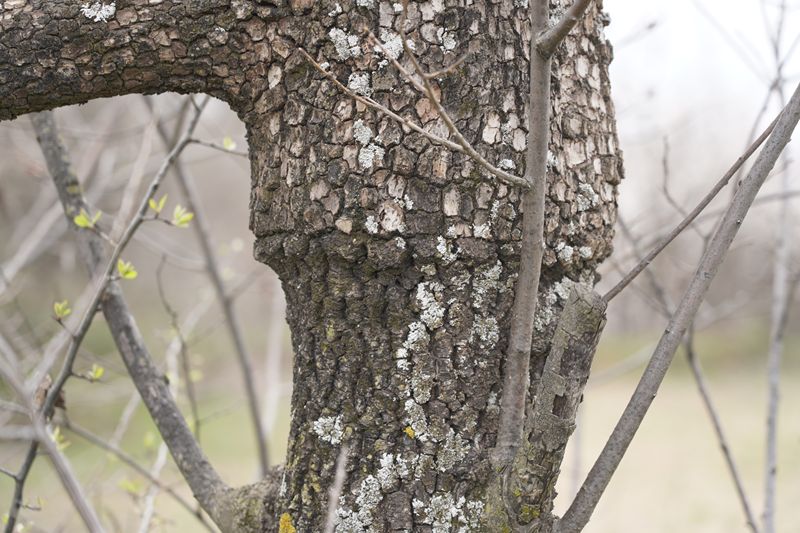 柿树表面,甲片状的树皮。