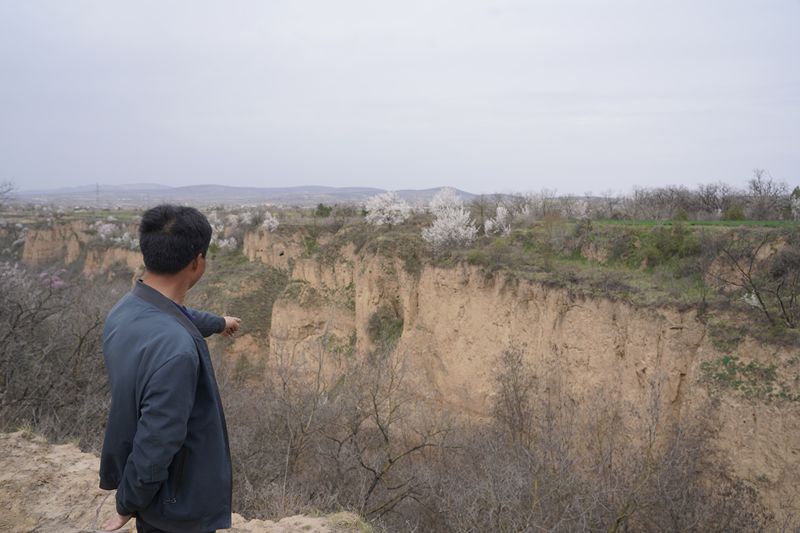 车里的人早已习惯头与车顶频繁接触。这里是常年少雨、地形破碎的黄土丘陵,人称“旱腰带”。车翻过一个个陡峭的土坡,稍不留神,田间就突然冒出一道百米深沟,崖壁垂直向下,像劈开的砖。