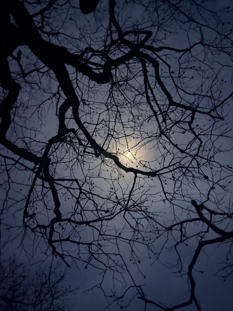 夜晚,村里地头的柿树树冠。