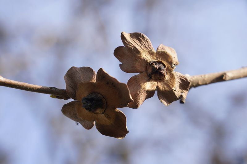 柿树枝头,柿果掉落后,留下的柄蒂。