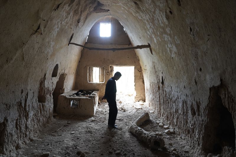 村里废弃的窑洞中,仍能看到火炕等曾经生活的痕迹。