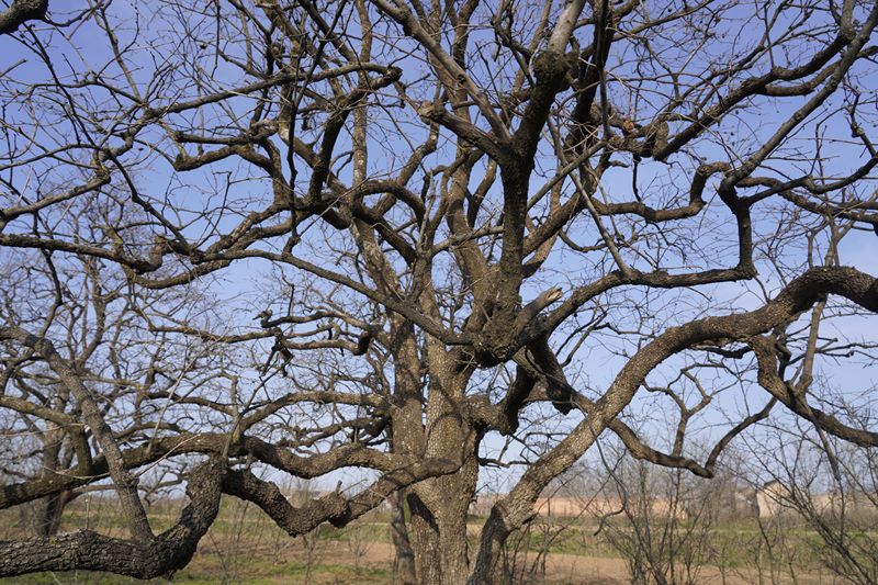事实上,这无疑是一棵“精品树”,将以至少3000元的价格出售。树身胸径(距地面1.2或1.3米处的树干直径)超过40厘米,树冠繁密,掉光了叶子也不“漏眼”。五六根支干壮如大腿,给后期修形留足了空间。去年秋天,它刚结了600多斤果。