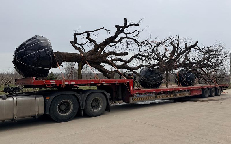 干这行的都知道,老树是稀缺品、是不可再生资源,要“百年等一回”。别人拔走了就永远轮不到你。运回园区花钱养着,也不能把它留在地里。一位临沂柿园的老板,习惯几十棵几十棵地买,“好赖我都要。”