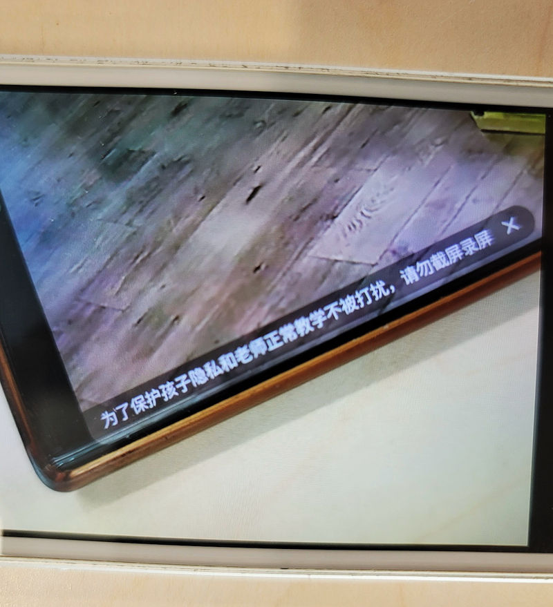 幼儿园的实时监控画面提示,“为了保护孩子隐私和老师正常教学不被打扰,请勿截屏录屏”。 图/受访者提供