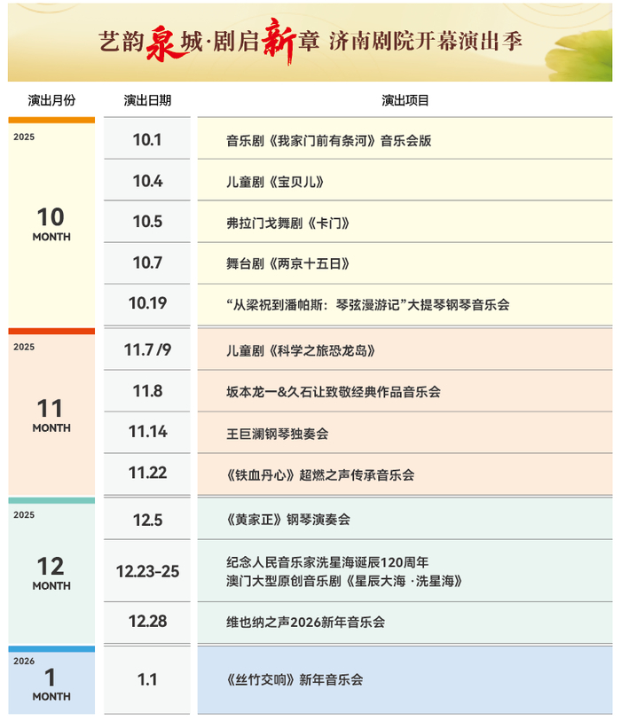 济南剧院的焕新回归,是济南市完善公共文化服务体系、提升城市文化软实力的具体举措。未来,剧院将联动韩美林艺术馆、泉城广场周边文化资源等,共同打造具有区域影响力的文化集聚区,助力济南文化建设高质量发展。关注“济南剧院”官方微信公众号获取更多最新演出信息与票务详情。