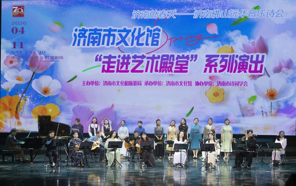 当诗文咏诵遇见琴乐和弦,千年泉城便奏响了春日诗意。4月11日晚,《济南的春天——济南佛山远华音乐诗会》在济南市文化馆群星剧场拉开帷幕,为现场近500名观众带来一场声音、文字、光影与心灵相融的交响演出。