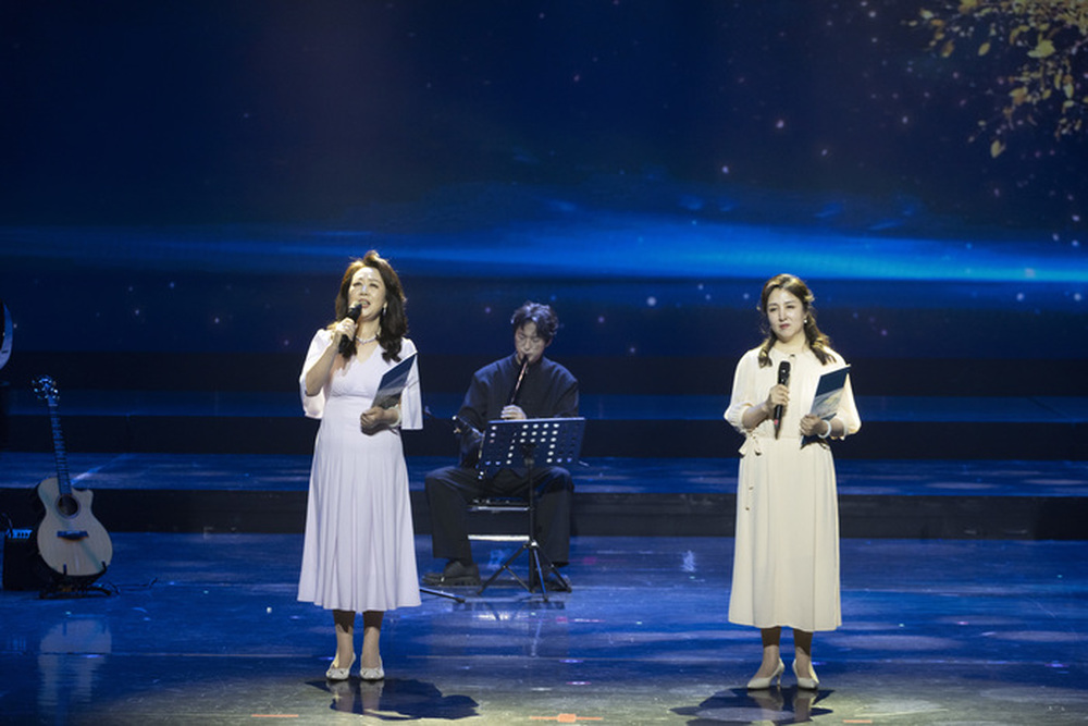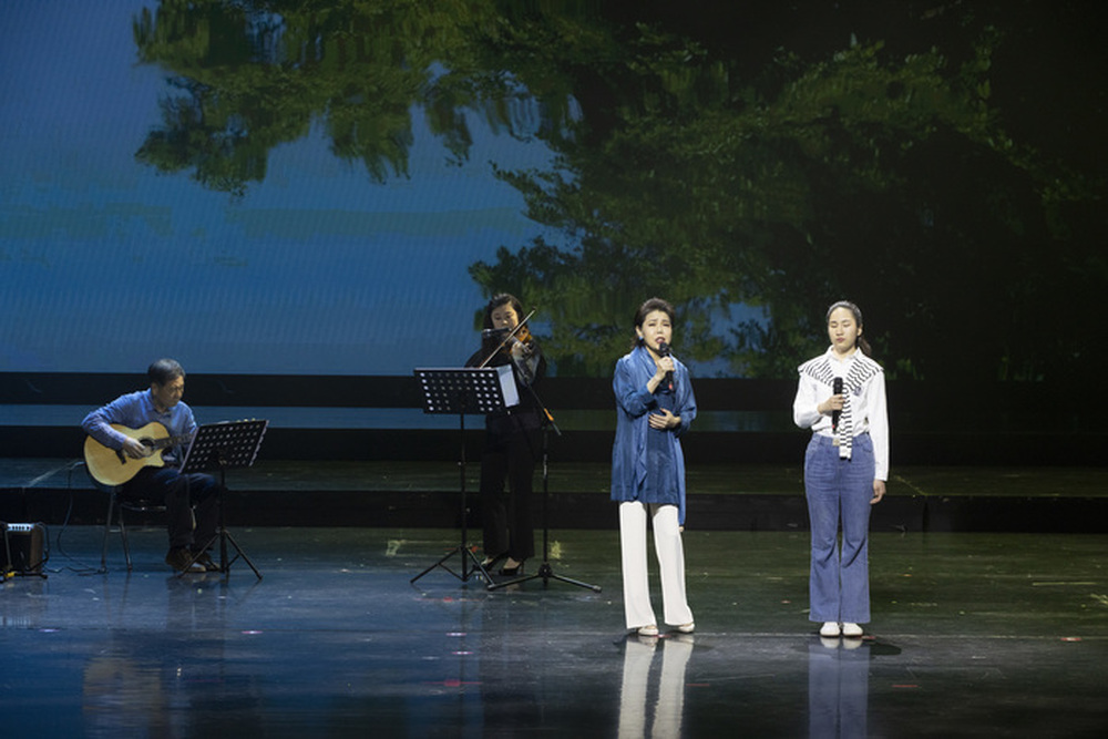 音乐诗会最动人的时刻,出现在节目《匆匆》的表演中。灯光温柔地聚焦在舞台中央,来自济南市特教学校的视障学生王添羽与朗诵艺术家何琳娜共同演绎朱自清先生的时光名作。“燕子去了,有再来的时候;杨柳枯了,有再青的时候……”王添羽的声音清澈而充满感知力,艺术家沉稳而充满支持的声音与她交织,仿佛时光的两种维度在对话。小提琴与吉他配乐的《希望赞歌》则更像是一道温暖的背景,托举着这份独特而真挚的表达。