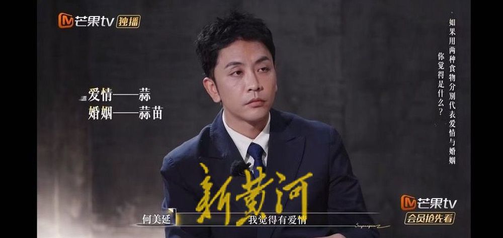 关于爱情与婚姻的隐喻,梁淞说,爱情是西瓜,好吃却不能当饭吃;婚姻则像是炒饭、面条,可以充饥,也要美味。何美延则认为婚姻应该是爱情的延续,就像是蒜和蒜苗——婚姻是爱情生长出的结果。能看得出,梁淞思维比较跳脱,何美延更有逻辑,但是两个人的共同点也很明显,都很务实,观念也偏传统。
