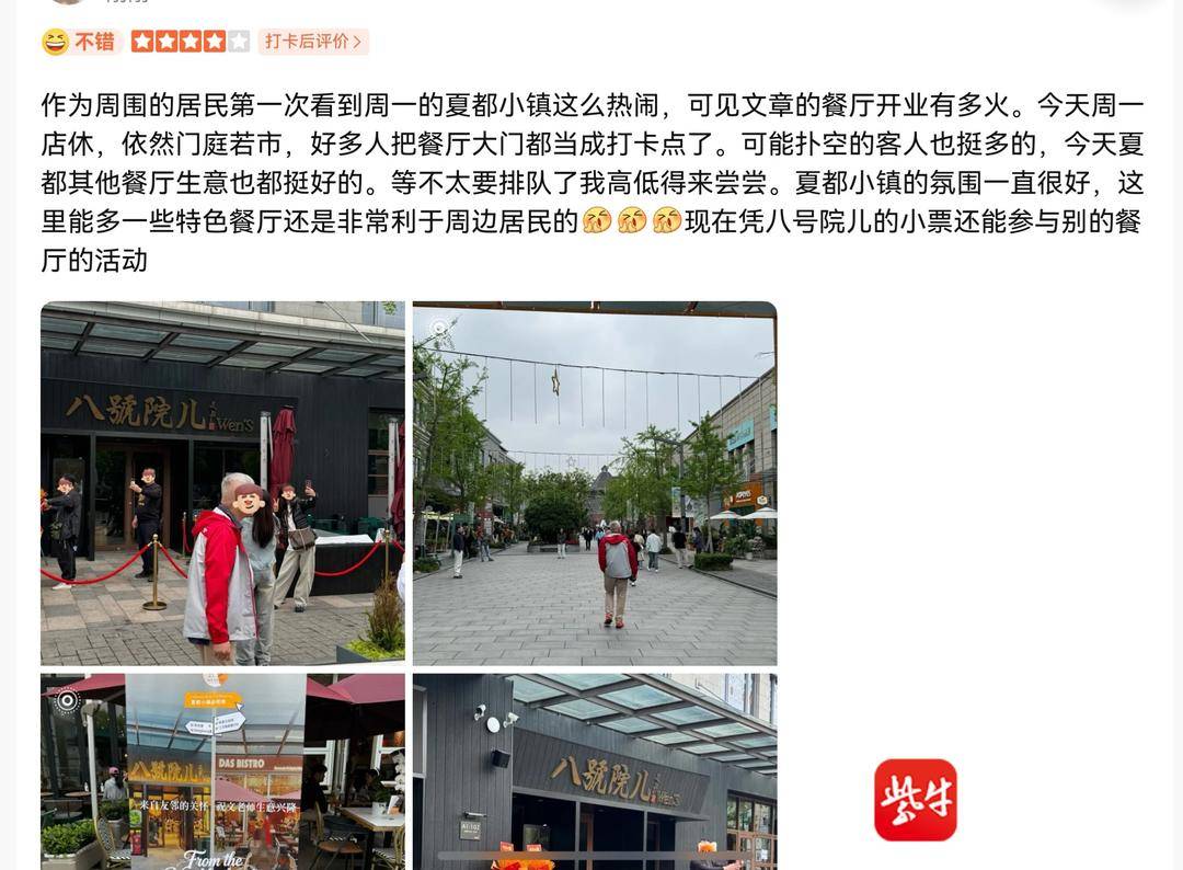记者注意到,该店位于上海青浦区夏都小镇,目前还在试营业阶段,人均消费76元,菠菜面和肉夹馍受到好评。从评价来看,不少食客在大众点评给予好评,但也有一些因排队问题和去了之后没吃上的顾客给予负面评价。“很多人来蹭流量开直播,门口围了里三层外三层。”