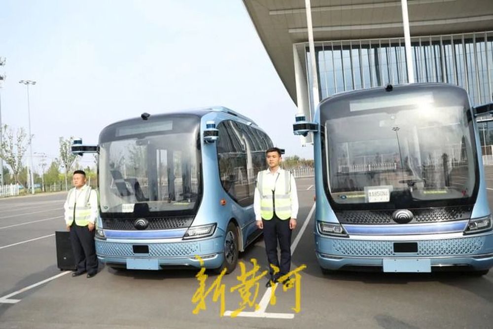 自动驾驶公交车在起步区黄河大道测试路段进行测试