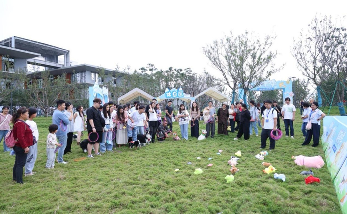 鹊山生态文化区(一期)阳光草坪特别规划为宠物友好活动区,致力于打造宠物活动主题目的地,未来将持续运营、长期服务。活动现场搭建了服务区、宠物比赛运动区、休息站、打卡点、宠物周边等各项服务配套设施,设有免费拾便袋、饮水用品、宠物游戏用品等,为萌宠提供自由活动的绿色空间,也为宠物主人提供手工咖啡休闲等陪伴、休闲、交友便利。