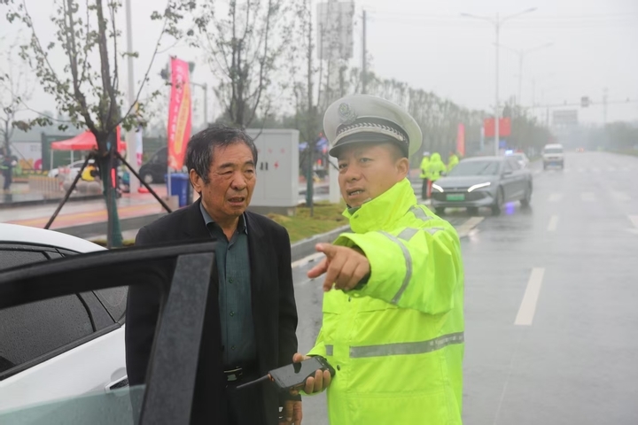 10月2日,济南出现降雨天气,为确保强降雨期间济南起步区鹊山生态文化区道路交通安全畅通,起步区交管大队以雨为令,根据恶劣天气应急工作预案,雨中坚守,全力确保辖区道路交通安全畅通。