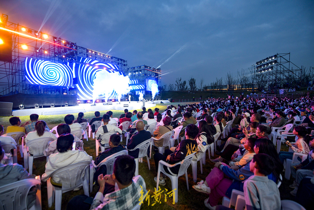 10月3日傍晚,在济南新旧动能转换起步区鹊山生态文化区一期项目,草地音乐节演出激情开唱。