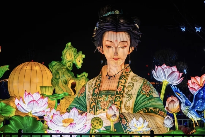 灯会内容精彩纷呈:“鹊华中新园”以光影构筑中外文化交融的奇幻之境;“如梦令主题区”将李清照、辛弃疾的词意化为可沉浸的光影画卷;“泉韵LIVE”让泉水景观与现代光影节奏共鸣;“绿色家园”打造出一条诗意盎然的光影景观长廊;而“大河颂歌”则以骏马、飞天等意象,展现黄河文明的磅礴气韵。