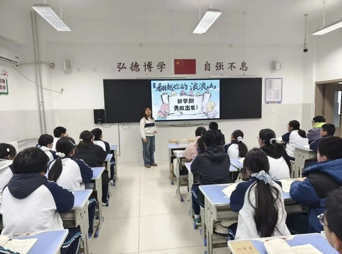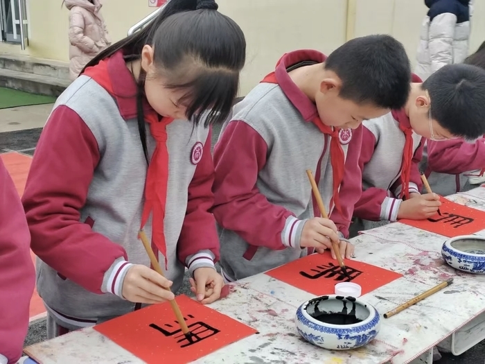 打破传统典礼模式,各校创新设置特色环节,让开学仪式既有温度又有新意。起航实验小学以“起航少年 ZHI启新章”为主题,校门口机器狗萌趣互动、心愿墙贴满学子期许,典礼现场智能机器人“起小航”登台亮相,科技感拉满;校长杨晓虹以“质润成长强体魄,志存高远立初心,智启未来增本领,知礼明善修品德”寄语师生,凝聚起同心奋进的力量。东营小学精心设计“击鼓明智”“梦想弹弹球”等互动环节,三声鼓响立下立德修身、勤学善思、志存高远的誓言,巨型气球在师生手中传递,将奋进力量凝聚于心。清源小学则打造“爱的双向奔赴”,教师代表送上趣味“成长锦囊”,学生张贴心愿卡、抽取祝福签,每一个细节都彰显着校园温情。鹊华小学以“骐骥驰骋 万象更新”为主题,开展立春主题展演、创意作画等活动,香王小学打造“马上有福”特色场景,让师生在趣味互动中感受传统文化魅力,开启欢乐新学期。