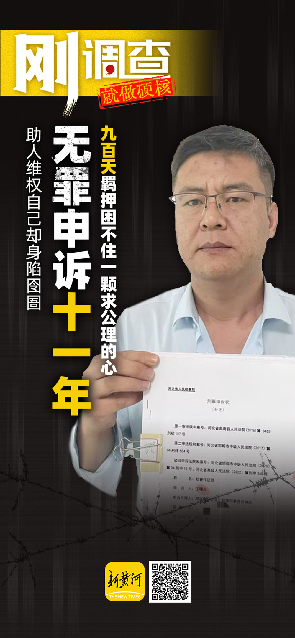 因助人维权两度入狱,前后共被羁押900多天。王曙光坚称自己无罪。“我跟黄某源唯一一次接触,民警全程都在场。黄某源是否该被刑拘和定罪,那是办案机关的事情,跟我又有什么关系?”出狱后,王曙光持续申诉屡屡被驳回。