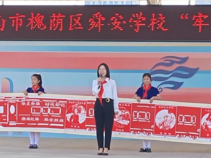活动现场,舜安学校“红领巾宣讲团”正式成立。学校依托“胶济铁路微展馆”红色教育资源,联合长清区非遗剪纸代表性传承人王宪志,将红色文化与剪纸艺术创新融合,共同创作“华夏脊梁时代印记赓续红脉舜安担当”剪纸长卷。清致幼教集团总园长刘忠霞与济南营东教育集团党总支书记董庆峰共同为长卷揭幕,王宪志勉励队员“以剪纸铭记历史,用技艺传承精神”。