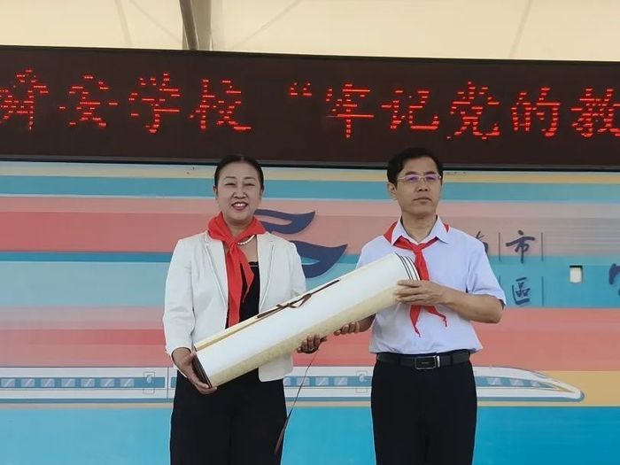 宣讲团成员获颁聘书后,校长范莉为宣讲团授旗。未来,宣讲员们将走进校园、社区,讲述红色故事,传播文化自信,让革命精神薪火相传。