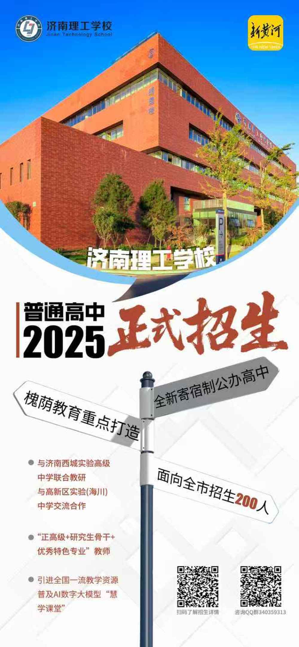 随着2025年招生季的到来,济南理工学校正式启动普通高中招生工作,面向全市初中毕业生招收200名学生。今年,学校以“职普融通、多元升学”为目标,通过与重点高中联合培养、精英师资团队护航、智慧课堂精准施教等举措,为学子开辟高考升学和技能成才的双重路径,助力学生圆梦理想大学。