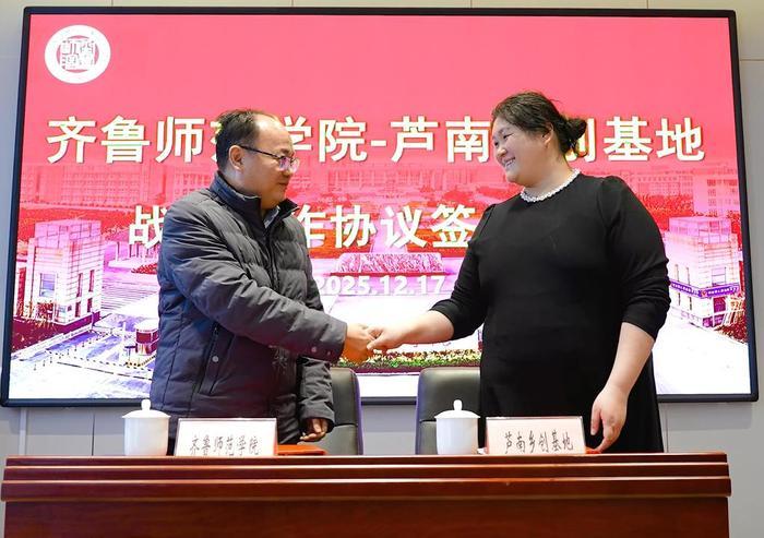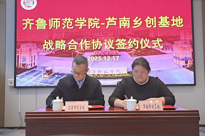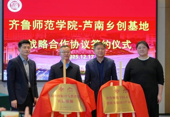 12月17日,齐鲁师范学院与济南芦南乡创基地战略合作协议签约仪式正式举行。双方签署合作框架协议,“芦南乡村振兴与教育创新实证基地”“齐鲁师范学院未来教育创新实验园(芦南基地)”两大基地揭牌成立,校地携手合作,将高校智力资源与乡村发展实践平台实现深度对接,为乡村振兴与教育创新注入“双动力”。