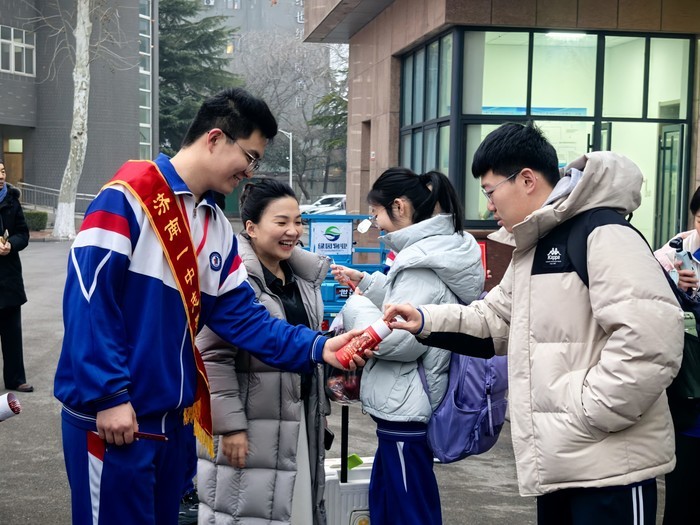 在山东省济南第一中学,校长苗翠强与入校学生一一击掌,并亲笔撰写幸运签供学生抽取。浸润在返校音乐中,学生们纷纷表示“有回家的感觉,返校真棒!”