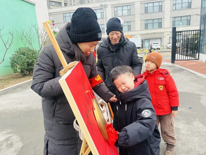在济南市槐荫区青少年宫第一幼教集团瑞锦台园,宝贝们一进园就与“福”撞个满怀——亲手摸福袋,摸出满满好福气;轻轻敲福鼓,一敲平安,二敲健康,三敲快乐;小小的心愿卡高高悬挂,载着童真与梦想,向阳生长。每一个环节都藏着老师们的巧思和祝福。