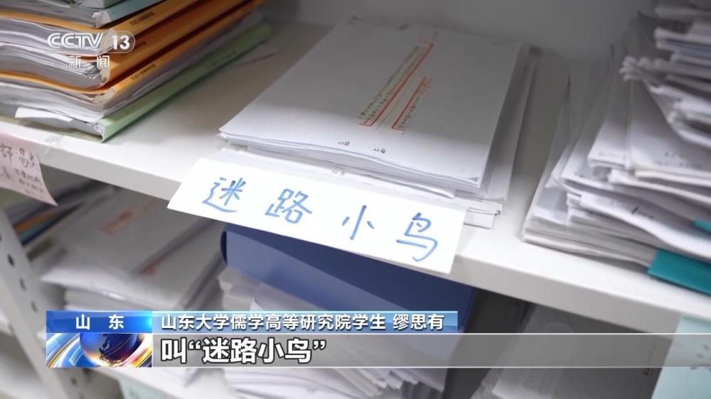 山东大学儒学高等研究院学生 缪思有:这个残页有的时候是残了半页,有的时候是只剩一个小角,只有几行字,就导致我们去查阅里面的内容也找不到文本的来源,就归入不进去。所以,它们找不到自己的家了,我们就起了个很可爱的名字叫“迷路小鸟”。