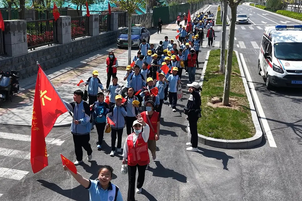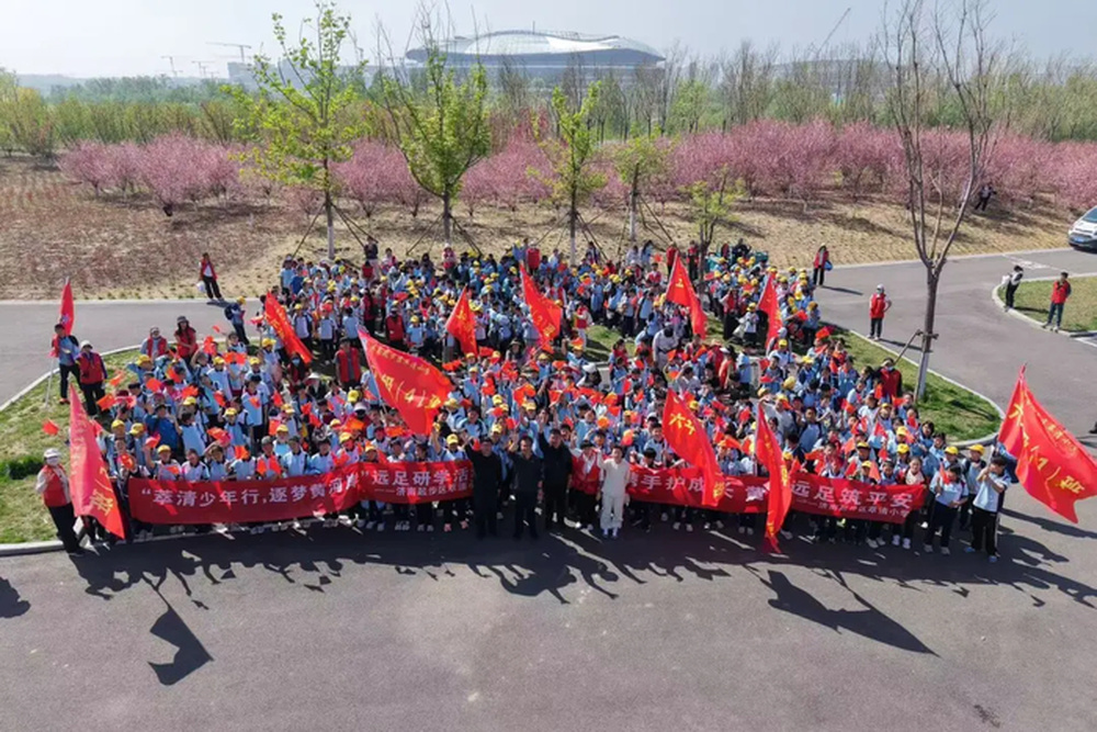 4月10日中午,济南起步区萃清小学举行远足研学活动,学校五、六年级500名师生集体出发,以启程、砺行、归程、蜕变为序,用脚步丈量家乡的路,感受行走的力量。