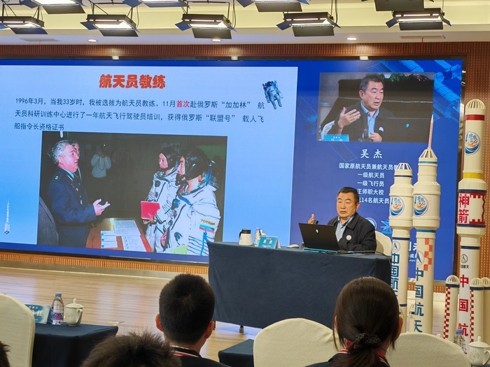 作为我国首批14名航天员之一、航天英雄杨利伟的两名教练之一,这位亲历我国载人航天工程发展历程的一级航天员,以自身训练、工作经历为线索,用深入浅出的语言讲述中国航天事业从无到有、由弱到强的发展历程,生动诠释“特别能吃苦、特别能战斗、特别能攻关、特别能奉献”的载人航天精神。学生们听得入神,掌声一次次响起,航天梦想在少年心中悄然生根。